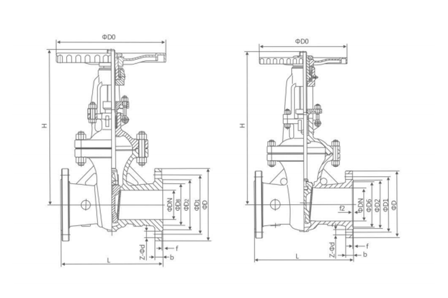 | L | D | D1 | D2 | b-f | Z-Φd | H | D0 | ||||||||||||||||